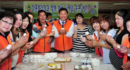 박용갑 중구청장은 송편을 함께 빚으며, “다문화 가정 구성원들과 이런 뜻 깊은 자리를 마련하게 되어 기쁘고, 함께하는 정을 느끼게 되어 더욱 의미 있는 한가위가 될 것 같다”며 환하게 웃었다.