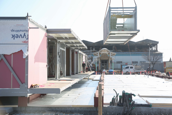 군에 따르면 4월 넷째 주 임시상설시장 개장을 목표로 지난 9일 일반동 점포가 입점 예정인 모듈러 구조 먼저 현장 설치를 시작하고, 3월 중순 막구조물도 현장 설치를 진행할 계획이라고 밝혔다.