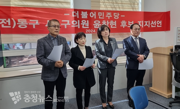 [충청뉴스 이성현 기자] 전직 더불어민주당 소속 시·구의원들이 국민의힘 윤창현 후보를 지지한다고 밝혔다.