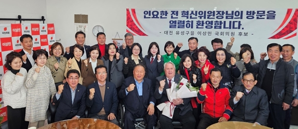 [충청뉴스 김용우 기자] 인요한 전 국민의힘 혁신위원장이 이상민 대전 유성구을 국회의원 예비후보 캠프를 응원 방문했다.