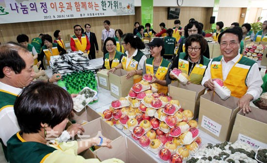 대전광역시 동구(구청장 한현택)는 26일 구청 후생관에서 추석을 맞아 어려운 이웃과 함께 정을 나누고 행복한 명절분위기 확산을 위해 ‘사랑의 선물바구니 만들기 행사’를 열었다.