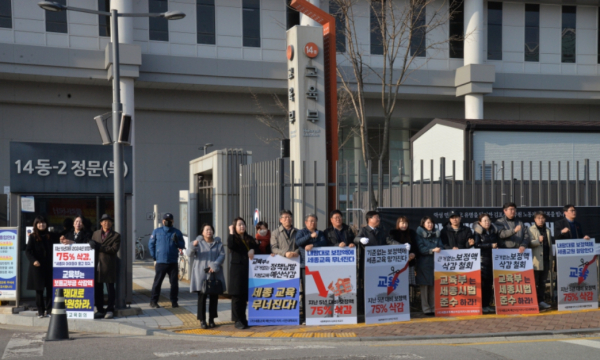 [충청뉴스 최형순 기자] 최교진 세종시교육감이 14일 정부세종청사 교육부 정문 앞에서 6일 때 ‘보통 교부금’ 보정액 대폭 삭감에 항의하는 1인 시위를 벌였다.
