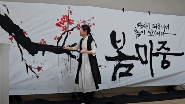 청보리 김순자 캘리그래퍼의 봄 마중 축제에 대한 캘리 퍼포먼스