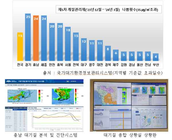 제5차 계절관리제(2023년 12월-2024년 3월) 기간 동안 도내 초미세먼지 나쁨 횟수는 현재까지 24회로, 전국에서 경기도(25회) 다음으로 많은 것으로 집계됐다.