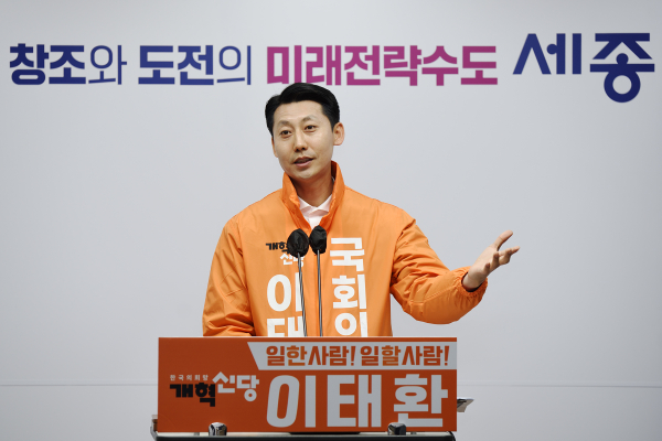 개혁신당 이태환 세종을 후보가 19일(화) 세종시청 정음실에서 행정수도 완성과 북부지역 발전계획, 청년, 문화예술 분야에 대한 공약을 발표했다.