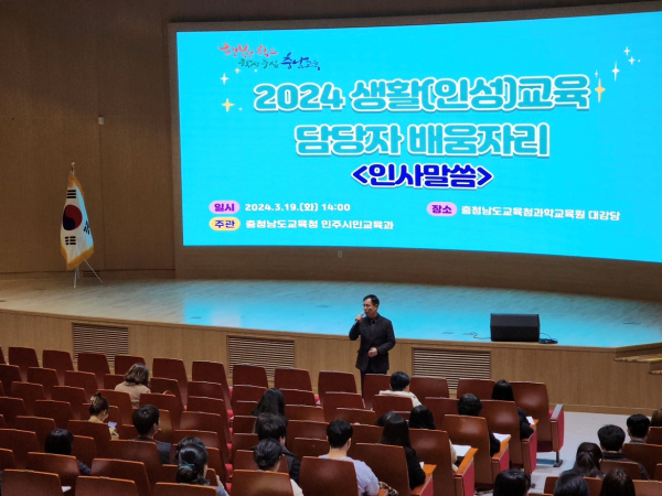 [충청뉴스 권상재 기자] 충남교육청은 19일과 21일 충남교육청과학교육원 대강당에서 도내 초·중·고등학교 교사 750여 명을 대상으로 ‘2024학년도 학생 생활(인성)교육 업무 담당자 배움자리’를 실시했다고 밝혔다.