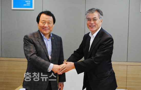 문재인 후보는 28일 오후 대전역 귀빈실에서 염시장을 만나 도움을 요청하자 염시장은 정기국회에서 도청사 무상양여를 비롯한 우리지역 현안 국책사업인 과학벨트 용지부담금을 정부에서 전액 부담할 수 있도록  민주당 대선공약에 반영해 줄 것을 요청했다.