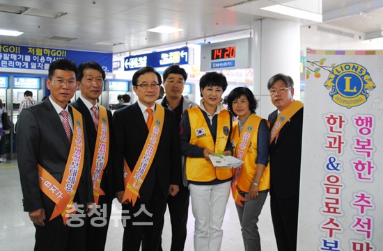 국제라이온스협회 356-B(대전)지구(총재 황인방)는 28일 대전역사에서 추석을 맞이해 고향으로 돌아오는 귀성객들에게 한과와 음료를 준비해 제공하는 봉사활동을 펼쳤다.