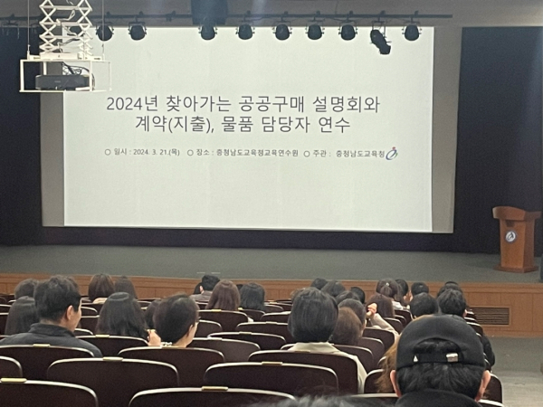 이와 관련 충남교육청은 21일 충남교육청교육연수원에서 오는 22일과 27일은 충남교육청과학교육원에서 교육현장의 지출 및 물품담당자를 대상으로 공공구매제도, 학교장터 활용 및 효율적인 물품관리에 대한 연수를 진행한다.