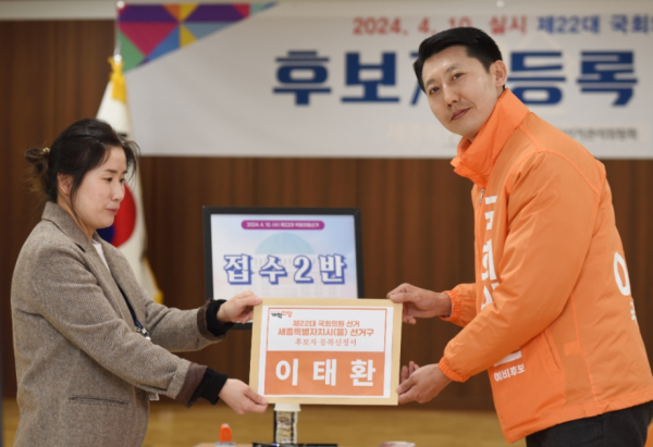 이태환 후보는 제22대 국회의원선거 후보 본등록이 시작된 21일 세종시선거관리위원회를 찾아 후보 등록 서류를 접수했다.