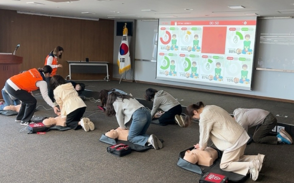 안전교육은 어린이 이용시설 종사자가 응급상황이 발생했을 때 신속하게 조치할 수 있도록 ▲영아·소아·성인 대상 심폐소생술 ▲자동심장충격기(AED) 사용법 ▲기도 폐쇄 시 대처 방법 등으로 구성됐다.
