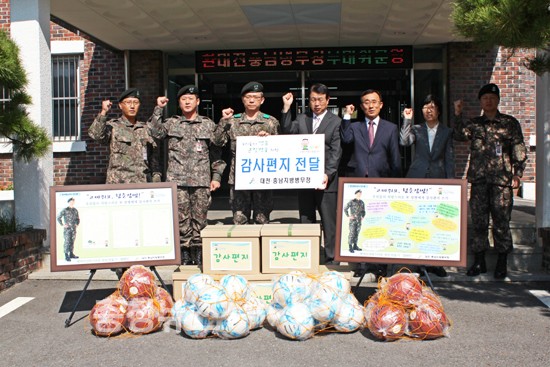 한편, 김노운 지방청장은 국민들의 감사편지와 함께 군 장병들의 사기진작을 위해 축구공 등 위문품을 전달하며 국토방위에 애쓰고 있는 장병들을 격려했다.