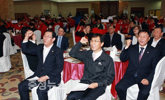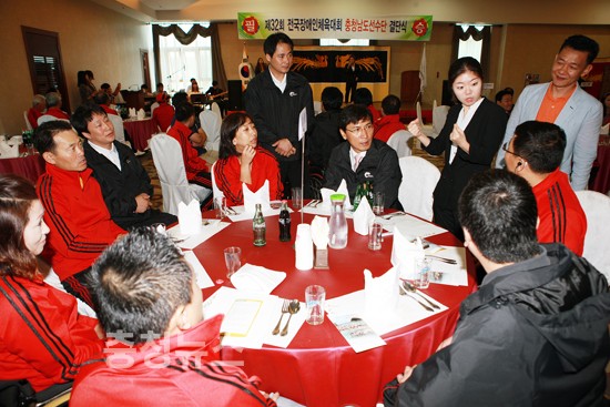 이날 결단식에는 안희정 충남지사를 비롯 선수단·지도자 등이 200여명이 한 자리에 모여 전국장애인체전의 선전을 기원했다.