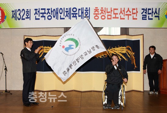 제32회 전국장애인체전에 참가하는 충남선수단의 결단식이 4일 오전 천안드라마웨딩홀에서 열렸다.