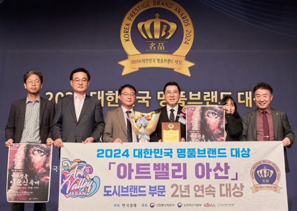 [충청뉴스 박동혁 기자] 충남 아산시의 도시브랜드 ‘아트밸리 아산’이 ‘대한민국 명품브랜드 대상’에서 도시브랜드 부문 대상을 2년 연속 수상했다.