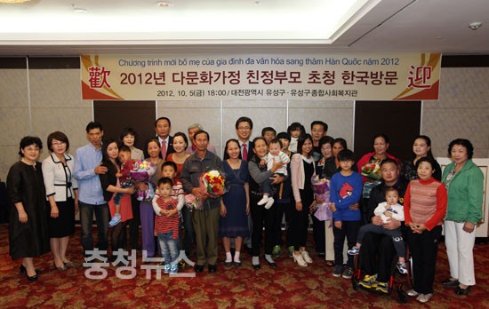 4개 가정 6명의 다문화가정 친정부모가 대전시 유성구(구청장 허태정)의 결혼이주여성 친정부모 초청사업으로 우리나라를 찾은 가운데 지난 5일 저녁 리베라호텔에서 가족과 후원자, 관계자 등 50여 명이 참석한 가운데 열린 환영만찬에 참석했다.