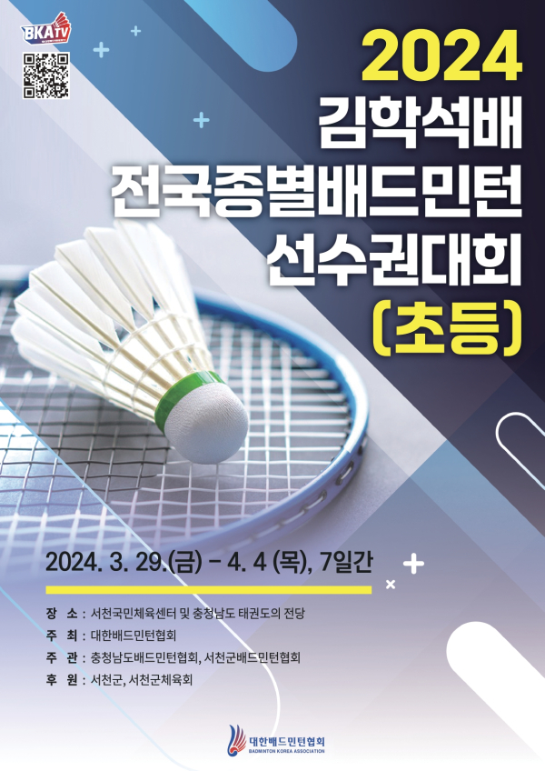 2024 김학석배 전국종별배드민턴 선수권대회(초등) 개최
