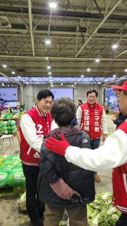 노은동 농수산물 시장에서 새벽을 맞이한 윤 후보는 "동료시민 속에서 동료시민의 삶과 함께하고 싶은 마음을 담겠다"며 시민의 삶으로 들어가는 선거운동 전략을 내세웠다.