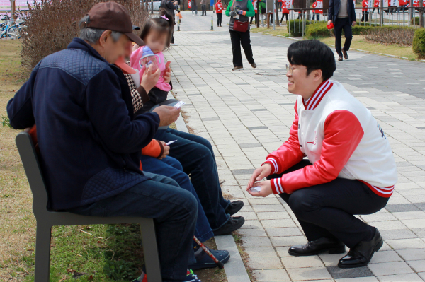류제화 후보는 자신도 2살, 4살 다둥이 아빠라 소개하며 “마음놓고 아이를 키울 수 있는 세종을 만들기 위해 열심히 일하겠다”라며 지지를 호소했다.
