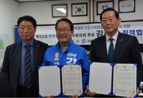 [충청뉴스 최형순 기자] 강준현 세종을 국회의원 후보(더불어민주당)는 세종시 주민생계조합(조합장 이은영)를 만나 '원주민 생활 안정과 일자리 창출'을 위해 상호 협력키로 했다.