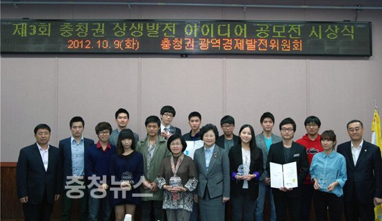 충청권 광역경제발전위원회(공동위원장/대전시장 염홍철, 충북도지사 이시종, 충남도지사 안희정)가 개최하는 제3회 아이디어 공모전 시상식이 9일, 충북 청원 오창벤처프라자 1층 회의실에서 열렸다.