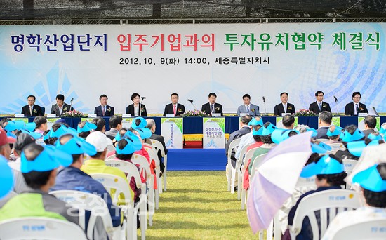 이 날 유한식 세종시장은 “9개사의 이번 명학산업단지 분양에 따른 투자결정으로 지역 내 일자리창출 등 자족기능 확충을 위한 밑거름을 뿌리게 돼 기쁘다”며 “앞으로 보다 공격적인 투자유치활동을 통해 행복도시건설청 등 중앙정부와 함께 세종특별자치시의 자족기능 확충을 위한 명품도시 건설에 최선을 다할 것”이라고 말했다.