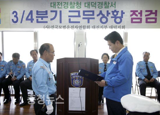 대덕모범운전자지회는 매분기마다 대덕경찰서와 함께 근무상황 점검 및 유공자 표창을 수여하고 있다.