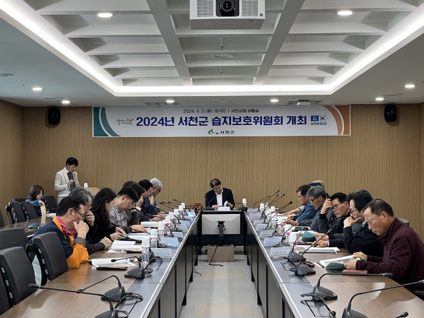 [충청뉴스 서천 = 조홍기 기자] 서천군이 지난 2일 2025년도 해양보호구역사업 발굴에 따른 심의를 받고자 군청 상황실에서 노태현 서천부군수를 위원장으로 하여 17명이 참여한 가운데 습지보호위원회를 개최했다.