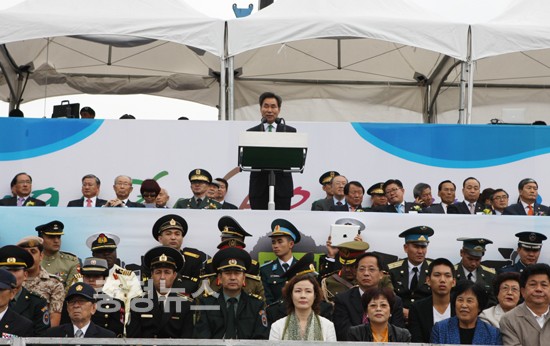 ▲ 이기원 계룡시장이 10일 개막한 2012계룡군문화축제 개막식 환영사를 하고 있다.