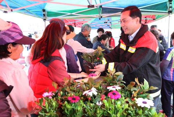 [충청뉴스 박영환 기자] 동구는 이날 행사에서 꽃치자와 자금우, 봄꽃 2종(오스테오스펄멈, 가자니아) 등 약 2,500본을 주민들에게 선착순으로 1인당 2본까지 제공했다.