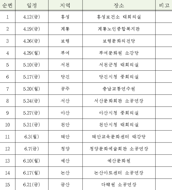 오는 12일부터 6월 중순까지 도내 15개 시군 순회 교육