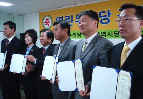 열린우리당 대전시당(위원장 박병석)은 11일 오후 2시 대전시당사에서 염홍철 대전시장후보와 노중호 유성구, 박영순 대덕구, 권득용 동구, 전종구 중, 김용분 서구 등 49명의 후보자들에게 공천장을 수여했다.