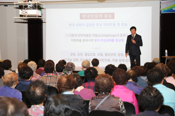 이날 박 군수는 삼국시대부터 각광받아 동의보감에도 실렸던 한국인삼의 효과 효능 및 서양인에게도 주목받아 국가 중대사 협상의 중요한 외교 수단이었던 인삼의 역사 이야기 등을 설명했다.