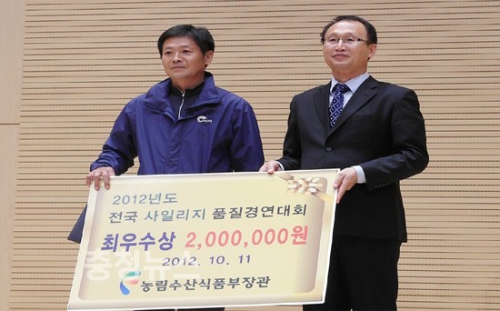 서천군 기산면 영모리 이승덕(52세, 온새미로한우농장 대표)씨가 농림수산식품부와 농촌진흥청, (사)한국초지조사료학회가 공동으로 실시한 2012년도 전국 사료작물 사일리지 품질경연대회에 참여해 지난 11일 농촌진흥청 축산과학원에서 최우수상인 ‘농림수산식품부 장관상’을 수상했다.