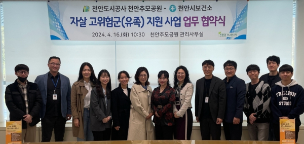 [충청뉴스 박동혁 기자] 충남 천안시 서북구·동남구보건소는 16일 천안추모공원과 자살 고위험군(유족) 지원을 위해 업무협약을 체결했다고 밝혔다.