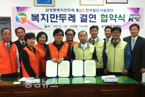 대전광역시 동구 삼성동 복지만두레(회장 정헌화)는 15일 삼성동주민센터(동장 박시서)에서 한국철도시설관리공단(이사장 김광재)과 관내 소외계층 지원을 통해 복지 나눔 실행을 위한 MOU를 체결했다.