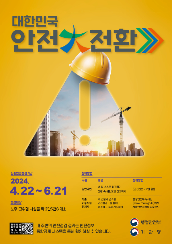 아울러 점검시설 대상을 주민이 직접 신청하여 선정된 시설물의 안전점검도 집중안전점검 기간에 추진될 예정이다.