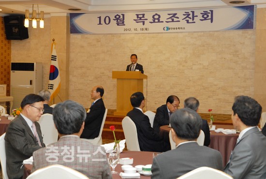 대전상공회의소(회장 손종현)는 18일 오전 유성호텔 3층 킹홀에서 지역발전을 선도하는 기관단체장들의 최대 정례교류회인 ‘2012년 10월 목요조찬회’를 개최하고 경제 활성화와 현안사업의 원활한 추진을 위해 상호 의견을 나눴다.