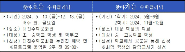 대전수학문화관, 2024학년도 수학클리닉 운영