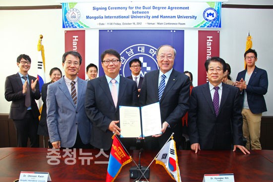 한남대학교와 몽골국제대학이 19일 복수학위 협정을 맺었다.