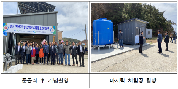 [충청뉴스 조홍기 기자] 신보령발전본부(본부장 이성재)는 지난 25일 충남 보령시 오천면 원산 2리 마을회관 앞에서 주민, 보령시 관계자, 대중소기업 농어업협력재단 및 중부발전 임직원 등 약 50여명이 참석한 가운데 바지락 양식장 복원 및 체험장 조성사업 준공식을 가졌다.