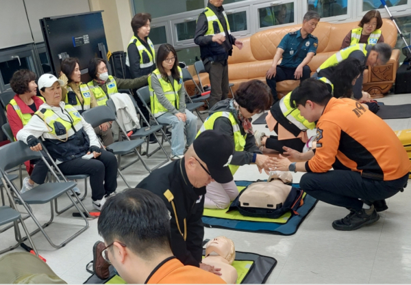 이날 교육은 자율방범대원들의 눈높이에 맞는 심폐소생술의 원리와 중요성으로 특히, 위급상황 시 대처할 수 있는 심폐소생술 실습은 순찰 활동 현장에서 위급상황 발생시 생명을 구할 수 있는 골든타임을 확보할 수 있는 교육이라는 점에서 그 중요성을 인식하고, 적극적인 관심과 참여로 기본적인 역량을 갖추기 위해 노력하는 모습을 보였다.