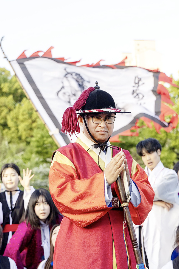 최충규 대덕구청장이 27일 동춘당 선생이 시호 교지를 하사받고 내려오는 행렬의 모습을 재현한 ‘문정공시호봉송행렬’에 참여해 시민들에게 인사를 하고 있다.