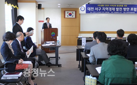 대전광역시 서구(구청장 박환용)는 23일 서구청 대회의실에서 ‘대전 서구 지역경제 발전 방안’을 주제로 포럼을 개최했다.