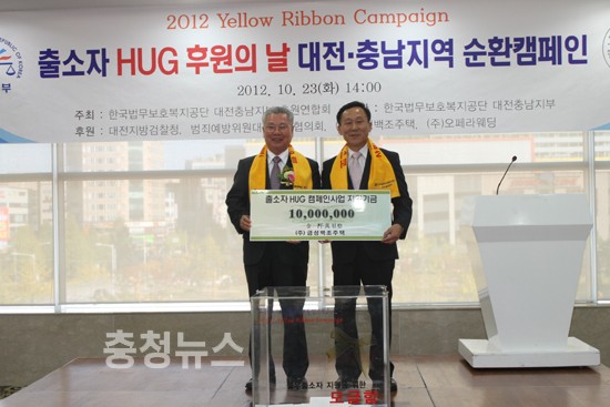후원연합회 정성욱 회장은 23일 오후 오페라웨딩홀에서 한국 법무보호복지공단 대전충남지부(지부장 김재환)에서 주최하는 ‘2012년 Yellow Friends 순환 캠페인’에 1천만 원을 기탁했다.