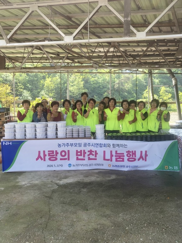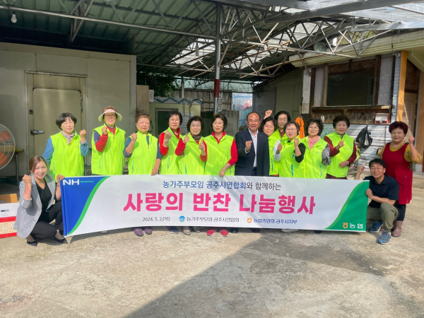 [충청뉴스 공주 = 조홍기 기자] NH농협 공주시지부(지부장 황광환), 의당농협(조합장 김정업) 및 농가주부모임 공주시연합회(회장 임영숙)는 2일 의당면 월곡리 농가에서 농가주부모임 회원 10여명과 함께 ‘찬찬찬’ 밑반찬 나눔사업을 실시했다.
