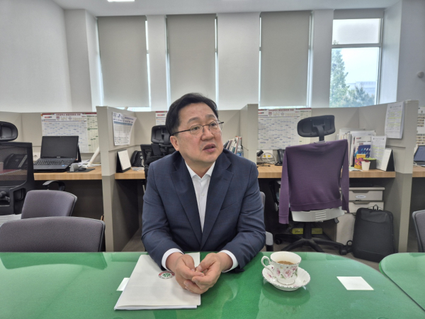 이장우 대전시장이 7일 오전 대전시청 기자실에서 소진공 사옥 이전 문제에 대해 발언하고 있다.