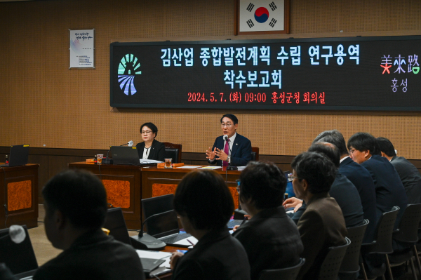 군은 7일 군청 회의실에서 이용록 홍성군수를 비롯해 부군수, 국장, 과장 등 부서 관계자와 용역 수행기관인 (재)한국자치경제연구원 등 40여 명이 참석한 가운데‘김산업 종합발전계획 수립 연구용역’ 착수보고회를 개최했다.