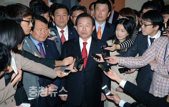 ▲ 이인제 대표는 기자들과의 인터뷰를 가지고 있다.