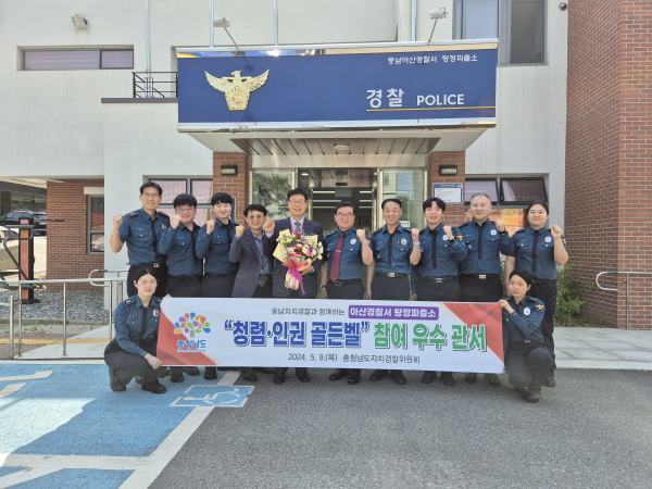 이날 김영배 위원회 사무국장은 우수관서로 선정된 아산 탕정파출소를 찾아 소정의 선물을 전달하고 현장 일선에서 근무하는 직원들의 노고를 격려했다.